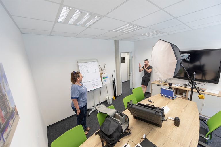Doch auch der bildliche Inhalt der Webseite erhielt einen gestalterischen Audit. Markus, Ralf und Lennard zogen sich geschlossenes und festes Schuhwerk an, achteten beim Verladen des schweren Fotoequipments auf rückenschonendes Heben und fuhren in die Apfelstraße in Downtown Heinsberg. Gänzlich unfallfrei entstanden hier neue Fotos im HQ von HSEQ.