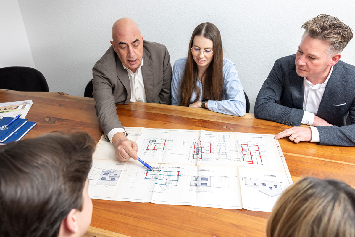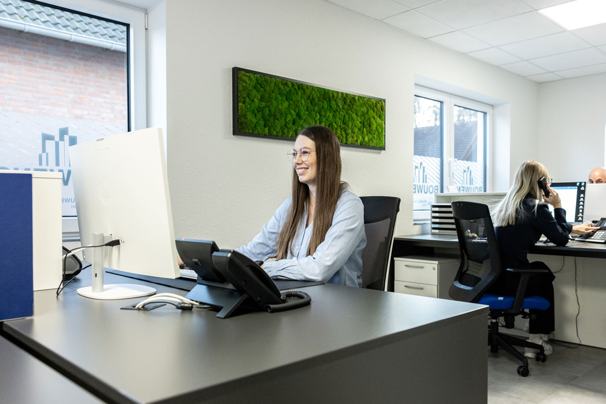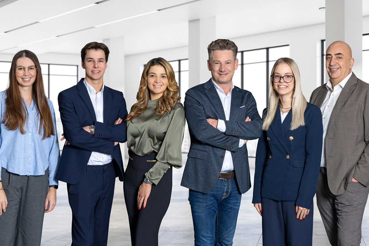 Im Fokus der Fotografie standen die Mitarbeiter und Mitarbeiterinnen sowie authentische Bürosituationen. Gerade in der Immobilienbranche spielt Vertrauen eine zentrale Rolle – und dieses entsteht vor allem durch echte Menschen. Die Mitarbeiterporträts wurden bewusst mit einem einheitlichen Hintergrund umgesetzt. Das sorgt für visuelle Ruhe und Zusammengehörigkeit, ohne die Individualität der einzelnen Personen zu verlieren. Ein konsistentes Erscheinungsbild signalisiert Stabilität und Struktur – zwei Faktoren, die unterbewusst Sicherheit vermitteln.